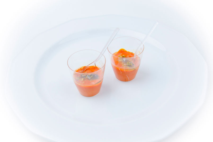 - Transparencias de espuma de tarta del Casar con fué y reducción de Pedro Ximenez